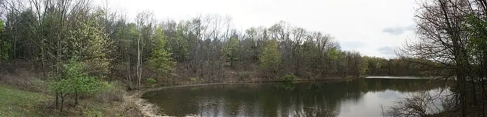 There are three easily accessible lakes: Eagle Lake, Jackson Lake and Whitford-Lawler Lake. The Kalamazoo River also runs along the western of the park. Several types of panfish[2] found within the area including bluegill (Lepomis macrochirus), pumpkinseed (Lepomis gibbosus), redbreast sunfish (Lepomis auritus) and yellow perch (Perca flavescens). There are a few species that are sought after as sport fish such as the largemouth bass (Micropterus salmoides) and smallmouth bass (Micropterus dolomieu). There are also abundant common carp (Cyprinus carpio) in Eagle Lake and the Kalamazoo River. During the winter ice fishers can often be seen on all three lakes.