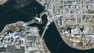 ![]() Satellite view of the bridge, on the right. A power dam is on the left. | |