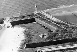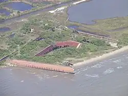 Fort Livingston was a 19th-century coastal defense fort located on Grand Terre Island in Jefferson Parish, Louisiana. The fort was named after Edward Livingston who had held positions as Mayor of New York City, U.S. Senator from Louisiana, and U.S. Secretary of State under President Andrew Jackson.[2] The structure was listed on the National Register of Historic Places[3] on August 30, 1974.[1] Original plans for the fort were prepared by Lieutenant H. G. Wright. These plans called for the fortress to be a trapeziform stronghold surrounded by a wet ditch and by outworks on the land side. The walls were constructed of cemented shell, faced with brick, and trimmed with granite.[4][5]