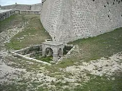 Access to the fort is made via a solid stone bridge, which connects the outer wall to the gate-of-arms.[1]