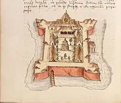 ![]() ![]() Top: Bird's eye view of Fort Victoria, Ambon in the 17th century. Bottom: Fort Victoria | |