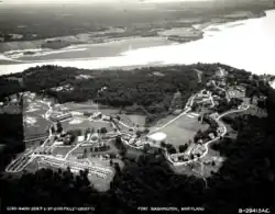 Fort Washington, located near the community of Fort Washington, Maryland, was for many decades the only defensive fort protecting Washington, D.C. The original fort, overlooking the Potomac River, was completed in 1809, and was begun as Fort Warburton, but renamed in 1808.[4] During the War of 1812, the fort was destroyed by its own garrison during a British advance.