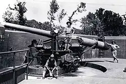 Fort Washington was garrisoned by the 260th Coast Artillery Regiment of the District of Columbia National Guard Coast Artillery, and a number of military units were organized at the post, including the 8th Provisional Artillery Battalion, then sent to France where they became the 53rd Artillery (Railway), Coast Artillery Corps.[22] In 1924 the coast defense commands were renamed "harbor defense commands". After World War I several harbor defense commands were disarmed, and this included Fort Washington by 1929.[23][24]