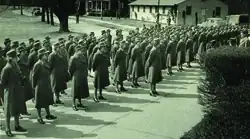 On March 3, 1943, the 67th WAAC Detachment reported to Fort Washington and became part of the Adjutant General's School's Service Company. They were assigned administrative, communications and transportation functions to replace men who were needed overseas. Most of Fort Washington's women received their basic training at Daytona Beach, Florida, but a few had been trained at other centers. The workdays were long, usually 12 to 16 hours, and every Friday there was a dress parade after work. Saturday mornings began with a formal parade and inspection, but service at Fort Washington was not all work, there was some time for rest and relaxation. The base swimming pool was a popular activity during the summer and a military bus ran from the front gate to Washington. There was a dance at the club every Friday evening.[27]