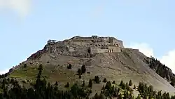 The Fort de l'Infernet is a fortification complex near Briançon in the French Alps. It was built as part of the Séré de Rivières system of fortifications in 1876–78 to defend France against invasion from Italy. It specifically overlooks the valley of the Durance behind and the Fort du Gondran, closer to Italy. Built at an elevation of 2,380 metres (7,810 ft), the fort was accessed by an aerial tramway, which connected to the older Fort du Randouillet at lower elevation. It was the last French fort to be built from cut stone masonry.