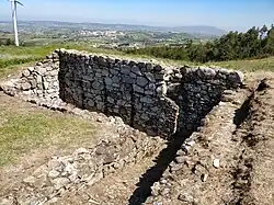 The fort is at 439 meters above sea level, on top of the Monte Agraço mountain range, and occupies an area of 3.5 hectares.[6] It was part of a group of seven forts and redoubts in the 2nd section or district of the first of the Lines of Torres Vedras and designated No. 14 in the numbering system used for all of the works carried out on the lines. Work on Alqueidão began on 4 November 1809.[3] Wellington’s headquarters were close by in the village of Pêro Negro, and, because of its commanding position, the fort served as the command post for the Lines. Using an optical telegraph signalling system, the fort could communicate with the Fort of Archeira to the south of Torres Vedras and from there to both the Fort of São Vicente to the north of the same town and the Atlantic coast.[7][8]