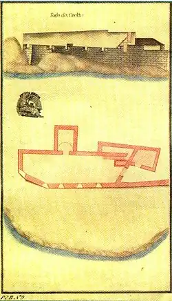 - 9° - Fort of Greta. It is discharged from service again, it has six canon emplacements, and four iron pieces capable with its men, it requires two more with men and for the garrison it requires six artillerymen and 24 auxiliaries.[3]