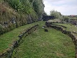 Little is unfortunately known about the fort’s construction or development. The assumption is that it was constructed by Pedro Anes do Canto, a large landowner in Biscoitos, who was responsible for the São Pedro fort, which was named after him, in order to cover the other possible landing area in Biscoitos. A review of forts carried out by Field Marshal Baron de Bastos in 1862 notes that the fort had been unfit for many years, stating that "It is simply a work of earth, built on private property, and should only be rebuilt when circumstances require it". Its present restored condition does, however, show considerable stonework. During World War II, it housed a machine gun nest. The ruins of a small house at its entrance must also be related to the work carried out during that conflict, since this building is not included in an 1898 plan.[1][2]