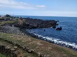 Slightly to the north of the fort are World War II defences in the form of trenches cut into the volcanic rock by the sea.