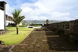 The Chapel of Santo António, located along the southern wall of the fort, the chapel is a simple semi-rectangular building constructed of basalt and painted in white (with the exception of the stone cornices, the door- and window-frames and base).[15] The Chapel of Santo António was built in order to support the local garrison: its interior, although simple, was covered in artistic azulejo tile.[15]