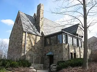 Foster Hall, also known as Melodeon Hall, is located on the campus of Park Tudor School at 7200 N. College Ave. in Indianapolis, Indiana. The Tudor Revival style building was designed by Robert Frost Daggett and built in 1927. It is a 1+1⁄2-story, stone building with a steeply pitched slate gable roof with seven gables. It features leaded glass windows and sits on a raise basement. It was built for Josiah K. Lilly Sr. (1861–1948) to house his collection of Stephen Foster materials and serves the community as a reception, concert, and meeting facility.[2]: 5