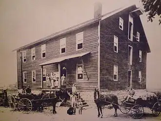 ![]() Fought's Mill in 1909. Isaac Allen Moyer, standing in center in overalls, was the 8th owner of the mill. | |