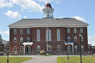 The Maine Central Institute was founded in 1866 by Free Will Baptists as a private academy intended to supply students to Bates College.[3] Construction of this, its first building, taking place over a ten-year period beginning in 1868.[2] The building now houses, in addition to classrooms, offices and a ballet studio, as well as the school's rifle range in its basement.[3]