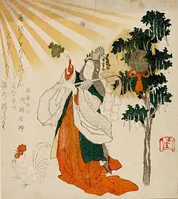 Founding of the Nation (建国, Kenkoku) is a 1929 oil painting by Japanese yōga artist Kawamura Kiyoo (1854–1932).[3] Based on the myth of the cave of the sun goddess from the Kojiki, the painting resides at the Musée Guimet in Paris, where it is known as Le coq blanc or The white cockerel.[1][2][4]
