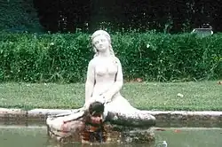 The Fountain of the Mermaid of Lleida also known as "Font de la Sirena" is a fountain in the Parc des Champs Elysees in Lleida, Catalonia, Spain, which features a statue of a mermaid holding a conch out of which water flows. The fountain is surrounded by a garden.[1]