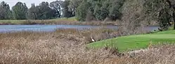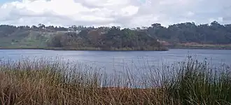 Within the lake at its verges are significant densities of wetland plants; moreover, at upland locations there are many native trees, particularly Coast live oak, Quercus agrifolia and Garry oak, Quercus garryana. Fishing has historically been conducted within the lake, although golf course and other urban development around the perimeter has reduced these practices.[8]