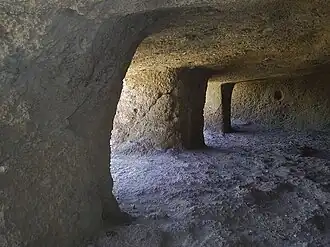 Other caves include the cueva de los Papeles ("the Papers' cave"), cueva de los Pilares ("the Pillars' cave"), cueva de la Audiencia ("the Audience cave") and the cantera de Molinos (quarry for grindstones). Most caves consist of a main central space with smaller rooms opening onto it. The caves were most likely shut off with dry stone walls. The main room may have been partitioned with light structures (for example of animal skins) or with stone alignments.[2]