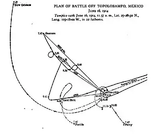 ![]() Map of the Fourth Battle of Topolobampo, drawn by the U.S. Navy observers during the battle. | |||||||