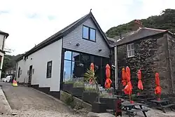 The first, six-oared, lifeboat was replaced in 1866 by a larger ten-oared boat, the Rochdale and Catherine Rashleigh, which meant that the boathouse had to be altered.[5] So far the official name had been "Fowey Lifeboat Station" but in 1892 it became "Polkerris". In 1895 it changed again to the compromise of "Polkerris and Fowey", but in 1904 it reverted to "Polkerris".[6] During a launch in 1908 a chain broke, and an inspection of the station found that the gradient changed three times in the boathouse and slipway; this was altered by February 1909 to make launching safer.[7] Several requests were made around this time for a lifeboat be stationed at Fowey, but the RNLI decided that the one at Polkerris was operating efficiently. Conditions changed following World War I as the RNLI brought in plans for a more efficient service with motor lifeboats, when it was decided that Fowey would be a better location for such a boat. Polkerris Lifeboat Station closed in 1922, after which it was converted into a café.[8]