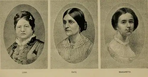 The Fox sisters were three sisters from Rochester, New York who played an important role in the creation of Spiritualism: Leah (April 8, 1813 – November 1, 1890), Margaretta (also called Maggie), (October 7, 1833 – March 8, 1893) and Catherine Fox (also called Kate) (March 27, 1837 – July 2, 1892).[1] The two younger sisters used "rappings" to convince their older sister and others that they were communicating with spirits. Their older sister then took charge of them and managed their careers for some time. They all enjoyed success as mediums for many years.