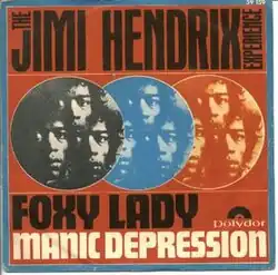 Hendrix's American record company Reprise Records issued the song as the third single of their debut album in December 1967, one month before the release of the second Experience album, Axis: Bold as Love. Reprise used the title "Foxey Lady", which also appeared on the North American release of Are You Experienced. It was backed with "Hey Joe", which Reprise had already released as a single in April 1967. Although Hendrix's albums performed quite well on the record charts, "Foxy Lady", along with the other early singles, made a relatively weak showing, peaking at number 67 on the Billboard Hot 100 pop singles chart.[13] In 1967, Polydor Records issued the single in Germany with "Manic Depression" as the B-side, but it did not appear on the charts.[14] Record World said of the single that "This one has the beat to perk up teen ears. Jimi wails it in nitty gritty fashion."[15]