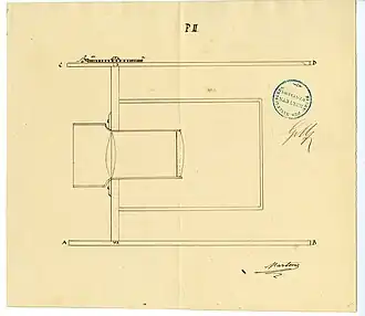 In 1845 Martens lived in Paris (17 rue Férou, in the 6th arrondissement). There he invented the Megaskop-Kamera, the first successful and technically effective panoramic camera. The first version of this camera featured a 1/4 swing lens and had a 150-degree arc. 4.7" × 15" curved daguerreotype plates were used on this model. A patent for this work is delivered on June 11, 1845 by the Minister of Agriculture and Commerce.[6]