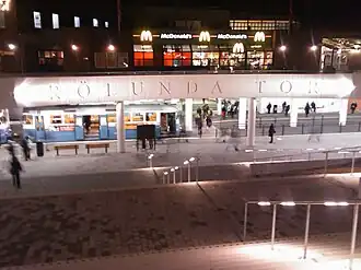 Frölunda Torg is located in west Gothenburg, in Frölunda. The shopping centre also offers parking space to 3000 cars in three parking lots and two parking-decks. Just outside there is a major bus-pit and a tram station with a tram arriving every three minutes. The tram station is accessed with tram lines 1, 7 and 8,[2] with a travel time from the inner city is about 20 minutes. This makes it easy to reach by public transportation, even if many of the visitors use car.