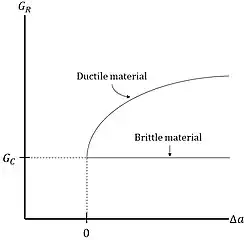 The resistance curve (R-curve) is utilized to study crack propagation and toughness development of a material by plotting the crack extension force versus crack extension. In bone literature, the R-curve is said to characterize "fracture toughness" behavior, but this term is not favored in engineering literature and the term "crack growth resistance" is used instead. This term is used to emphasize the material behavior over a change in crack length.[5] The R-curve linear elastic fracture mechanics approach allowed researchers to gain insight into two competing mechanisms that contribute to bone toughness. Bone displays a rising R-curve which is indicative of material toughness and stable crack propagation.[5]