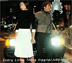 "Fragile" is the theme music of Fuji Television's Ainori, broadcast between October 2000 and September 2001. It is also the theme music of original video animation Fragtime, an anime adaption produced by Tear Studio and based on the manga of the same title. It was also used as the fourth insert song for the romance anime Tsuki ga Kirei (2017), covered by Nao Tōyama. Its cover version by Rie Takahashi was used as the third ending theme music for Teasing Master Takagi-san: The Movie (2022).[1] The single was released with "Jirenma", used as the ending theme song for Initial D Third Stage.