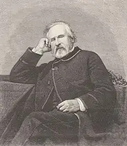 He married Léonie in 1840. Three years later, she became the lover of Victor Hugo. In 1845, she was caught with him, in flagrante delicto, at a hotel. She was arrested for adultery, but Hugo was not tried because the infuriated King Louis Philippe I did not wish the time of the Chamber of Peers.[5] to be taken up with a frivolous matter; Biard was bought off by a stunning commission, to make wall paintings for Versailles.[6] Léonie was taken to the Prison Saint-Lazare, served two months and was then placed in a convent for several months more. Hugo was told to leave town. The marriage was nullified in 1855.