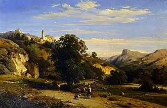 François Antoine Léon Fleury (c. 1804 – c. 1858) was a French landscape painter born in Paris. He was the son of Antoine Claude Fleury, under whom he at first studied, and then under Bertin and Hersent. Between 1827 and 1830 he made a sketching tour in France and the neighbouring countries. He occasionally painted figure subjects, such as The Baptism of Christ, at the church of St. Marguerite, and St. Genevieve, at St. Étienne-du-Mont, Paris. He died in 1858. Amongst his works are:
