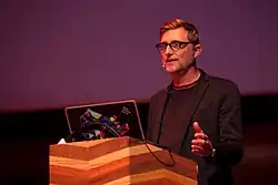![]() Audouy speaking at the 2019 Camp conference in Calgary, Alberta, Canada | |