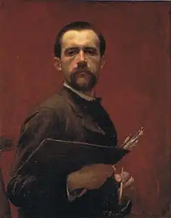 In 1879, on Ravier's recommendation, he was enrolled in the class of Michel Dumas, a former student of Ingres, who schooled him in the Classical tradition. With the support of Édouard Aynard, director of the museum commission, and Antonin Dubost, the Deputy from Isère, Guiguet went to Paris to complete his studies at the École des Beaux-arts, where he worked in the studios of Alexandre Cabanel.[1] While there, he also became a friend of Puvis de Chavannes and Félix Thiollier, who also had a great influence on his work, despite not being a painter. Guiguet made his debut at the Salon in 1885.[1]