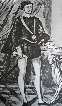 During 1585, he would receive elevation to the new highest order of chivalry established by Henri, being made a chevalier de l'Ordre du Saint-Esprit in the intake of 1585.[6]