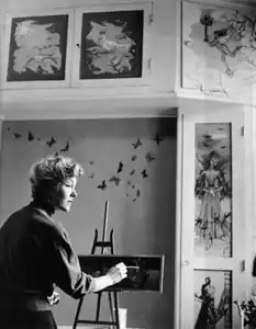 She originally was a professional pianist, but gradually switched to painting by 1951. Her works, created over a period of 50 years, have been exhibited many times and are held are in various museums and private collections. The pieces follow two main themes: female figures and cityscapes. Her figurative works are considered her best work, exhibiting a distinctive technique.