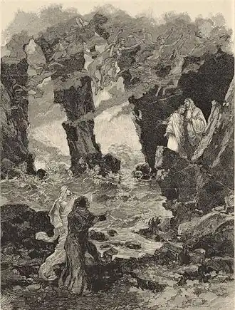 The opera's world premiere at the Paris Opera was originally planned for 1880. It was to be a highlight of the first season of Auguste Vaucorbeil as director, who also planned to produce Gounod's Le tribut de Zamora.[2] The first performance was finally staged by the Paris Opera on 14 April 1882 at the Palais Garnier.[3] Some of the most notable singers of the time participated in a lavish stage setting by Jean-Baptiste Lavastre to honour the prestigious composer. It received a mixed reception, and despite the efforts of supporters it mostly disappeared from the repertory.[3][4]