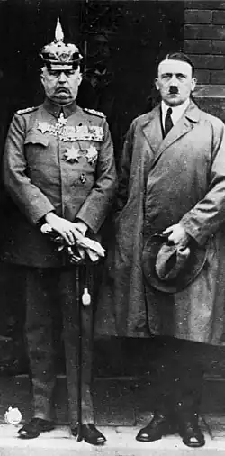 In the summer of 1923, Windischgraetz came into contact with prominent German nationalists Erich Ludendorff and Adolf Hitler with Bethlen's tacit approval.[11] German nationalists shared Hungary's animosity towards France and were eager to collaborate on clandestine operations. It was at that point that Ludendorff (a retired Prussian Army General) revealed to Windischgraetz that German industrialists from the French‐occupied Ruhr had financed a plot to counterfeit French francs. While the technical aspect of the plot had been nearly completed, it had to be abandoned due to the warming of Franco-German relations in the prelude to the Locarno Treaties. Ludendorff then offered Windischgraetz to execute the plot with the use of the left‐over equipment.[13] German engraver Arthur Schulze was sent to Budapest, he in turn helped procure printing machines in Leipzig. In the meantime, Windischgraetz's secretary Dezsö Rába arranged for 9,000 pounds (4,100 kg) of special paper to be shipped from Cologne. The materials were transported aboard tugboats navigating the Danube River and in sealed railroad cars from Bavaria.[11][14][13]