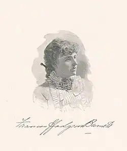 Frances turned to writing to earn money. Her first story was published in Godey's Lady's Book in 1868. Soon after, she was being published regularly in Godey's Lady's Book, Scribner's Monthly, Peterson's Magazine and Harper's Bazaar.[2] Keen to escape from the family's poverty, she tended to overwork herself, later writing that she had been "a pen driving machine" during the early years of her career. For five years, she wrote constantly, often not worrying about the quality of her work.[16] Once her first story was published, before she was 18, she spent the rest of her life as a working writer.[17] By 1869, she had earned enough to move the family into a better home in Knoxville.[18]