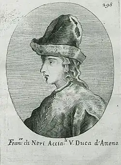 Francis or Francesco I Acciaioli was the son of Nerio II Acciaioli by his second wife Chiara Zorzi. He succeeded on his father's death in 1451 to the Duchy of Athens under his mother's regency.