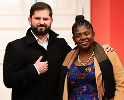 On election day, which occurred on 29 May, Márquez's Historic Pact ticket placed first, advancing to the runoff, since no candidate received over 50% of the vote. Márquez and Petro faced Rodolfo Hernández and Marelen Castillo.[35][36] Shortly after the first round, Márquez and Petro received the endorsement of Luis Gilberto Murillo for the second round. Murillo had been the Vice-Presidential running mate of Sergio Fajardo in the Hope Center Coalition, which did not qualify for the runoff.[37][38] Márquez and Petro went on to defeat Hernández and Castillo in the second round held on 19 June.[39] Upon her electoral triumph, Márquez proclaimed that the Petro administration would not "expropriate anyone". She said the most significant challenge she faced whilst on the campaign trail was racist attacks. Márquez's inauguration as vice president occurred on 7 August 2022.[40] On the other hand, due to the approval needed by Congress to establish the ministry of equality, Márquez may not assume the leadership of the proposed department until mid-way through her term as vice president.[41]
