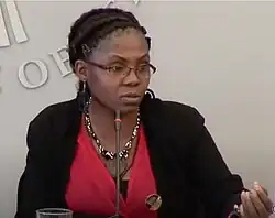 In December 2014, Márquez travelled to Havana, Cuba, to participate in the peace negotiations between the administration of president Juan Manuel Santos and the Revolutionary Armed Forces of Colombia.[21] While there, Márquez highlighted how the conflict had disproportionately affected Afro-Colombians and particularly black women. She also emphasised that ethnic minority groups needed to take part in the peace dialogue to ensure the preservation of lasting peace and stability.[22]