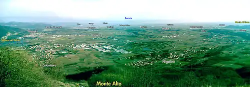 Franciacorta (Italian pronunciation: [frantʃaˈkorta] ⓘ) is a historical region in the Province of Brescia, Lombardy, Italy, with a population of around 158,249.[1] It is known for its wine production and includes world-famous producers such as Berlucchi, Bellavista and Ca' del Bosco. The name Franciacorta appears for the first time in 1277. It derives from the Italian “corti franche,” which were medieval villages exempt from tax or levies.