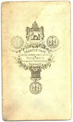 - ^ "Francis Chit. Photographer" (PDF). The Siam Times. 24 November 1864. p. 1. Retrieved 26 December 2023.