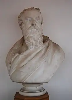 Williamson received a number of commissions from the municipal authorities in Birmingham. These included a marble bust of the Shakespearian scholar Samuel Timmins,[2] now in the Library of Birmingham, a statue of the dissenting theologian and natural philosopher Joseph Priestley, now in Chamberlain Square,[2] a statue of Sir Josiah Mason, (destroyed, but a 1952 bronze cast of the bust, by William Bloye, is in the suburb of Erdington), a statue of preacher and reformer George Dawson (since destroyed), a statue of John Skirrow Wright (also destroyed; a 1956 bronze cast of the bust by Bloye is in Birmingham Council House), and the decoration on the pediment of the Birmingham Museum and Art Gallery, a work known as the Allegory of Fame Rewarding the Arts.[2] A plaster cast of his bust of Tennyson (1893) is in the National Portrait Gallery.[5]