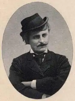 He was a frequent contributor to American and international periodicals, such as Town Topics. A talented musician, he wrote four comic operas and much musical criticism.[2] Much of his humorous, commercial work was written under the pseudonym Cupid Jones. Saltus wrote and edited a comic paper entitled the Thistle in the 1870s, the entire contents of which were written by him and signed with various pseudonyms.[9] After an illness lasting several weeks, he died at midnight on June 24, 1889 at the Riverside Sanitarium in Tarrytown, aged thirty-nine[10] and was buried in Sleepy Hollow Cemetery.[11] Saltus' father, Francis H. Saltus, edited a four-volume edition of his poetical works after his death.[4] Saltus left behind a good deal of unpublished material, including "five thousand lyrics for posthumous publication"[8] and several musical biographies, including a life of Gaetano Donizetti.