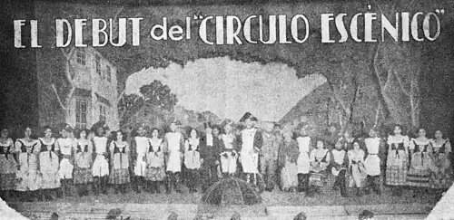 Circulo Escenico was officially inaugurated on January 6, 1923 in Teatro Sabina Bacolor, Pampanga with a grand gala presentation of a comedy in two acts, Jarabe de Pico and a one act zarzuela, Doloretes, launching its artistic and charitable endeavor, and its pro-Hispanic cultural mission. Basking in the subsequent successes and positive commentaries from the Manila press, the club ventured to premiere Nobel Prize in Literature Winner Jacinto Benavente's comedy in two acts Los Intereses Creados and a one-act zarzuela, La Cancion de Olvido , in the capital in June, 1929. The performances were received with much acclaim and admiration by the appreciative Manila public that the Circulo decided to make the capital its new home.[10] Except for the period of the Japanese occupation of the Philippines, the club sustained annual performances for thirty-one years until 1955 when it quietly exited the stage. In 1977, Dr. Mariano M. Alimurung resurrected the Circulo featuring mainly Don Paco's original works until 1980 when he met an untimely death.