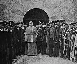 In the spring of 1930, shortly after the fall of Primo de Rivera, Estévanez assumed a more active political stance. In line with recommendations of the primate Pedro Segura (whom he knew from Segura's Burgos archbishopric term of 1926–1927)[90] and in co-operation with the Burgos archbishop Manuel de Castro he tried to mount a grand Catholic provincial political organization, "unión habitual fuera de partidos y a los fines unicamente de la Religión y de la Patria".[91] Nothing came out of these schemes; also their scaled-down version, a temporary general alliance possibly centered around the Integrist nucleus failed to materialize.[92] In late 1930 and early 1931 he seemed already focused merely on reconstruction of the Integrist structures, e.g. lobbying with Segura about clerical subscriptions to El Siglo Futuro,[93] and on general Catholic propaganda.[94]