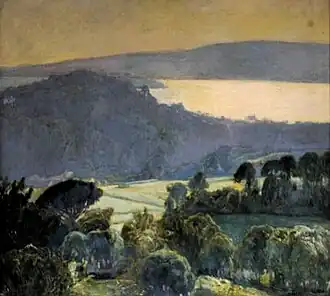 Over the next two decades, he participated in numerous exhibitions; notably a showing in 1917 at the Second Exposition of Galician Art and, that same year, at the Galerías Layetanas in Barcelona, jointly with his friend, Fernando Álvarez de Sotomayor. He also had showings at exhibitions in Panama and Buenos Aires, but never actually visited America. At the National Exhibition of Fine Arts of 1922, he was awarded a First Class prize for his landscape, "Rías Baixas". In 1929, he was commissioned to organize the Galician pavilion at the Ibero-American Exposition.[2]