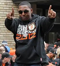![]() Peguero at the 2012 World Series victory parade | |