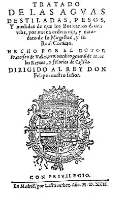 - Tratado de las aguas destiladas, pesos, y medidas de que los boticarios deuen usar. (1592).